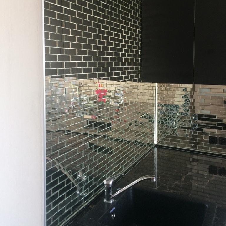 Использована зеркальная плитка "вытянутый ромб" с фацетом.